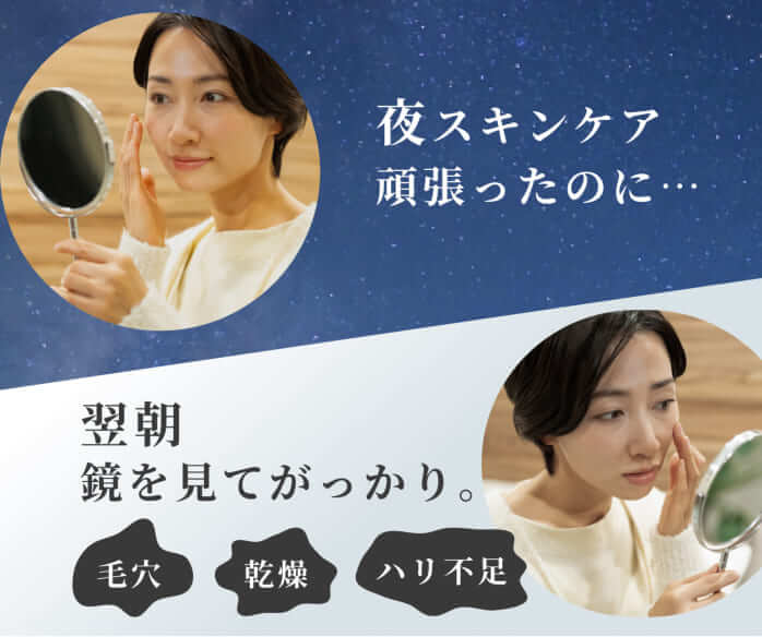 「夜スキンケア頑張ったのに、翌朝鏡をみてがっかり。」