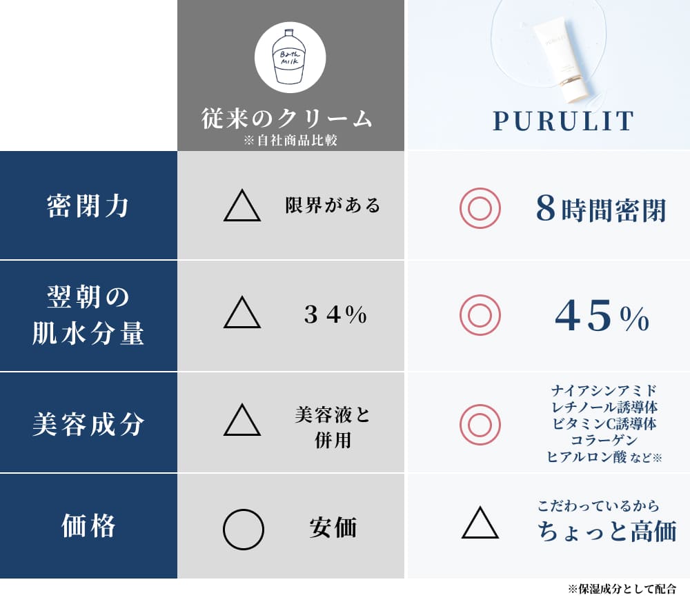 実際に、従来のクリームと比較しても
