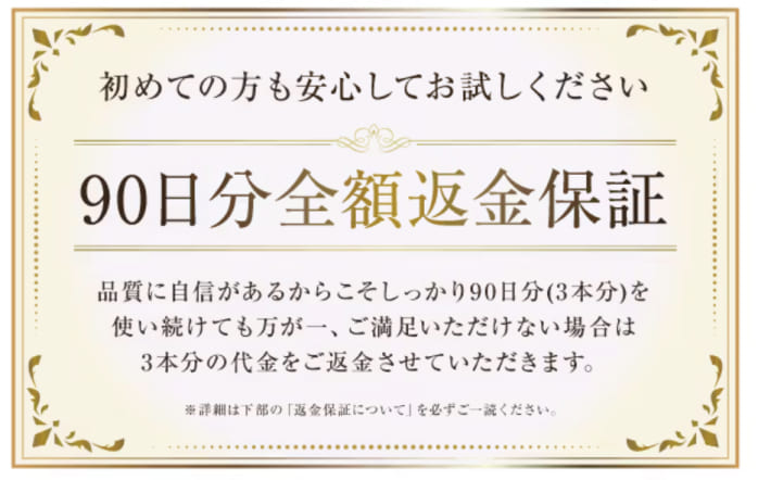 化粧品としては異例の「90日分全額返金保証」付き。